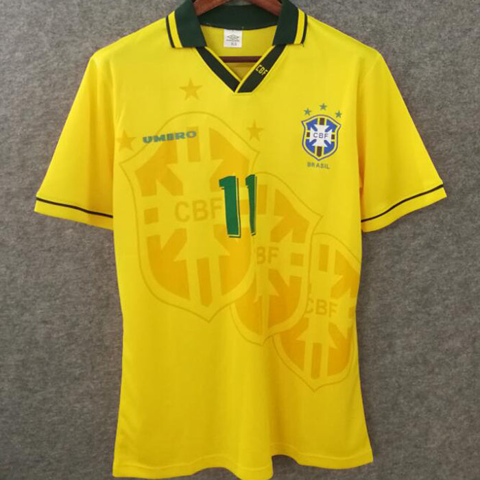 Este jersey retro del Brasil recupera el estilo de una de sus épocas más recordadas, ideal para quienes disfrutan los diseños clásicos del fútbol. Hace referencia a la temporada 1994. Corresponde al modelo local.